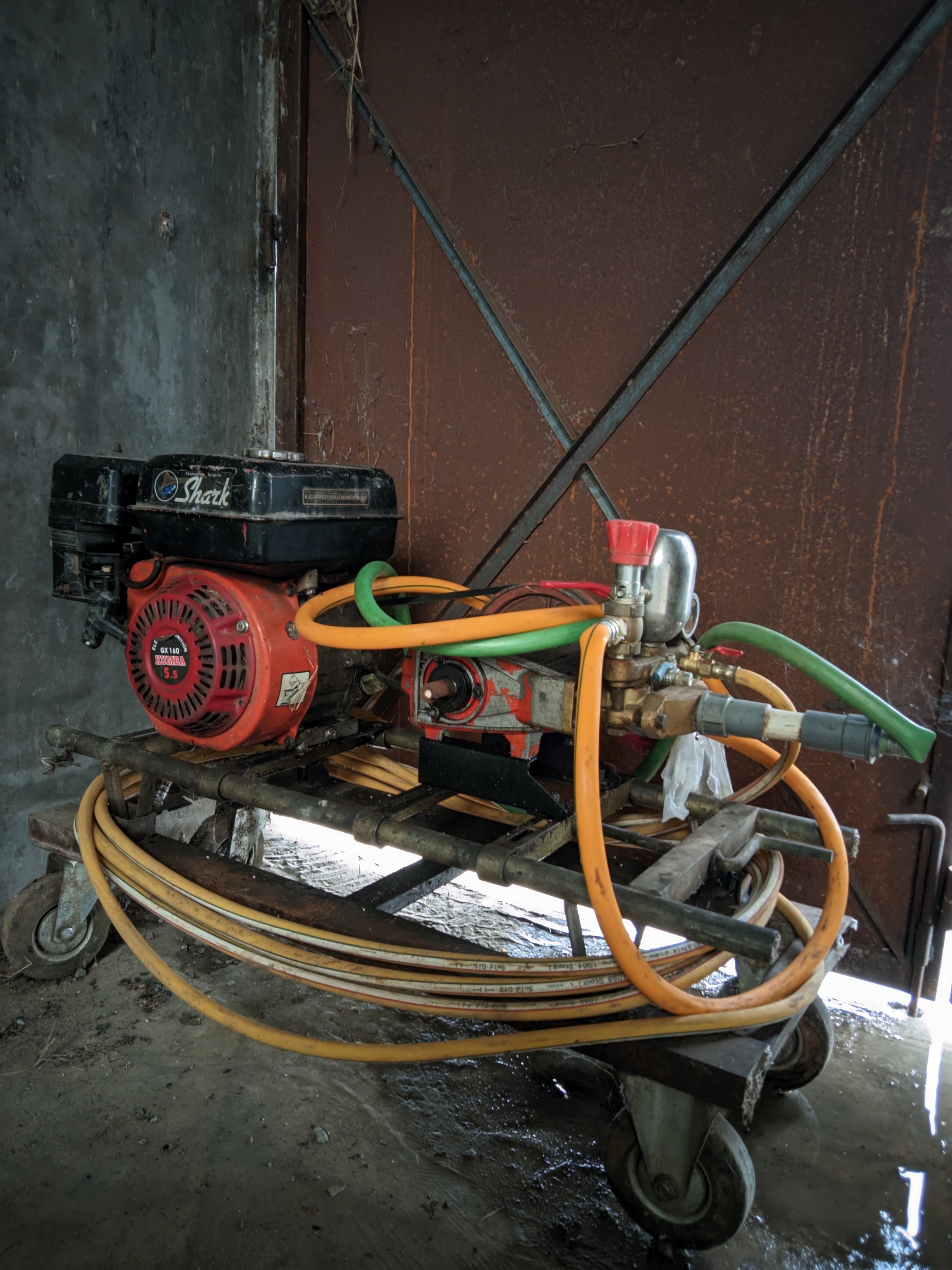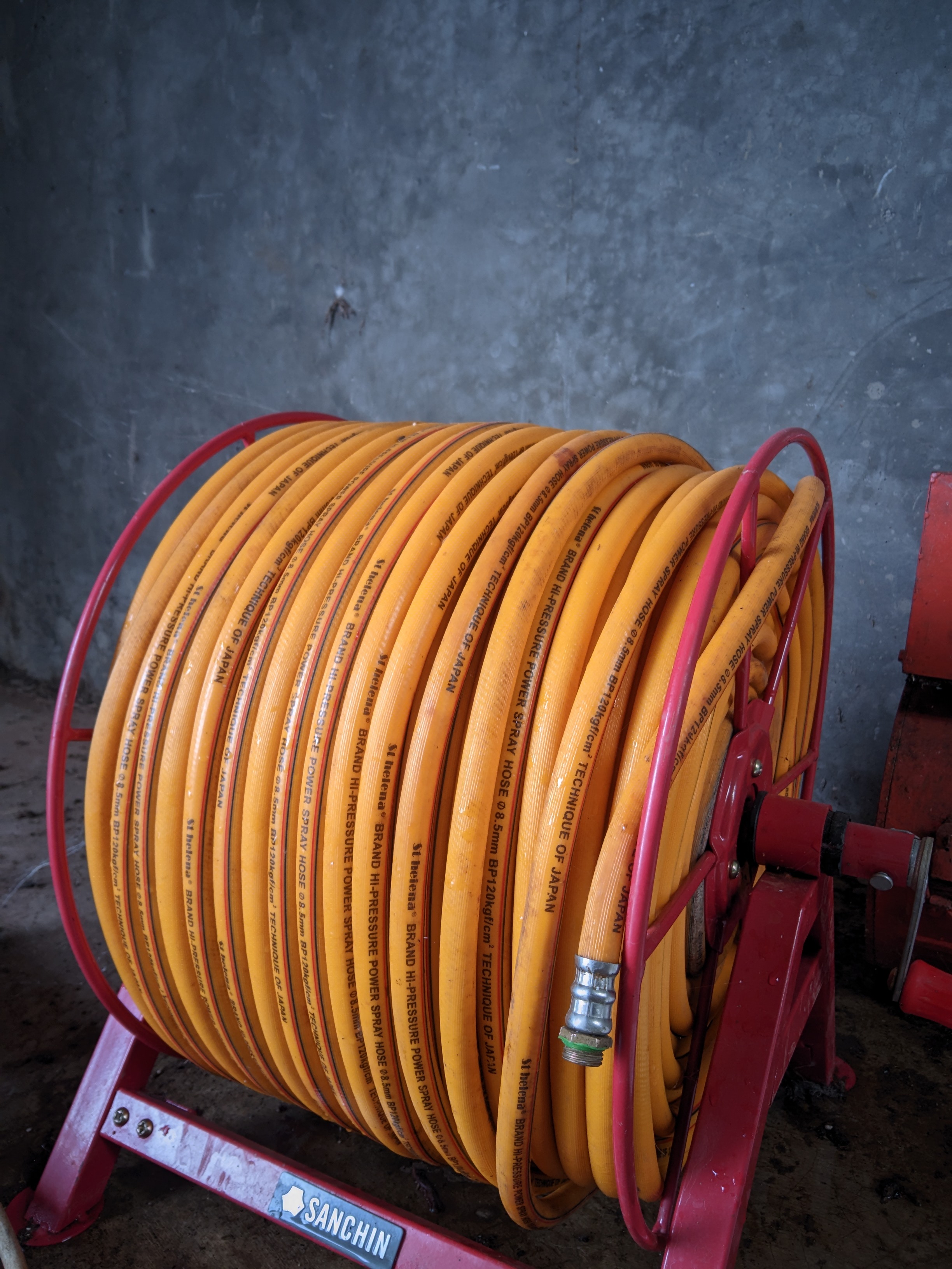 Selang air digunakan ketika penyemprotan pupuk, sehingga dapat menjangkau area yang lebih luas