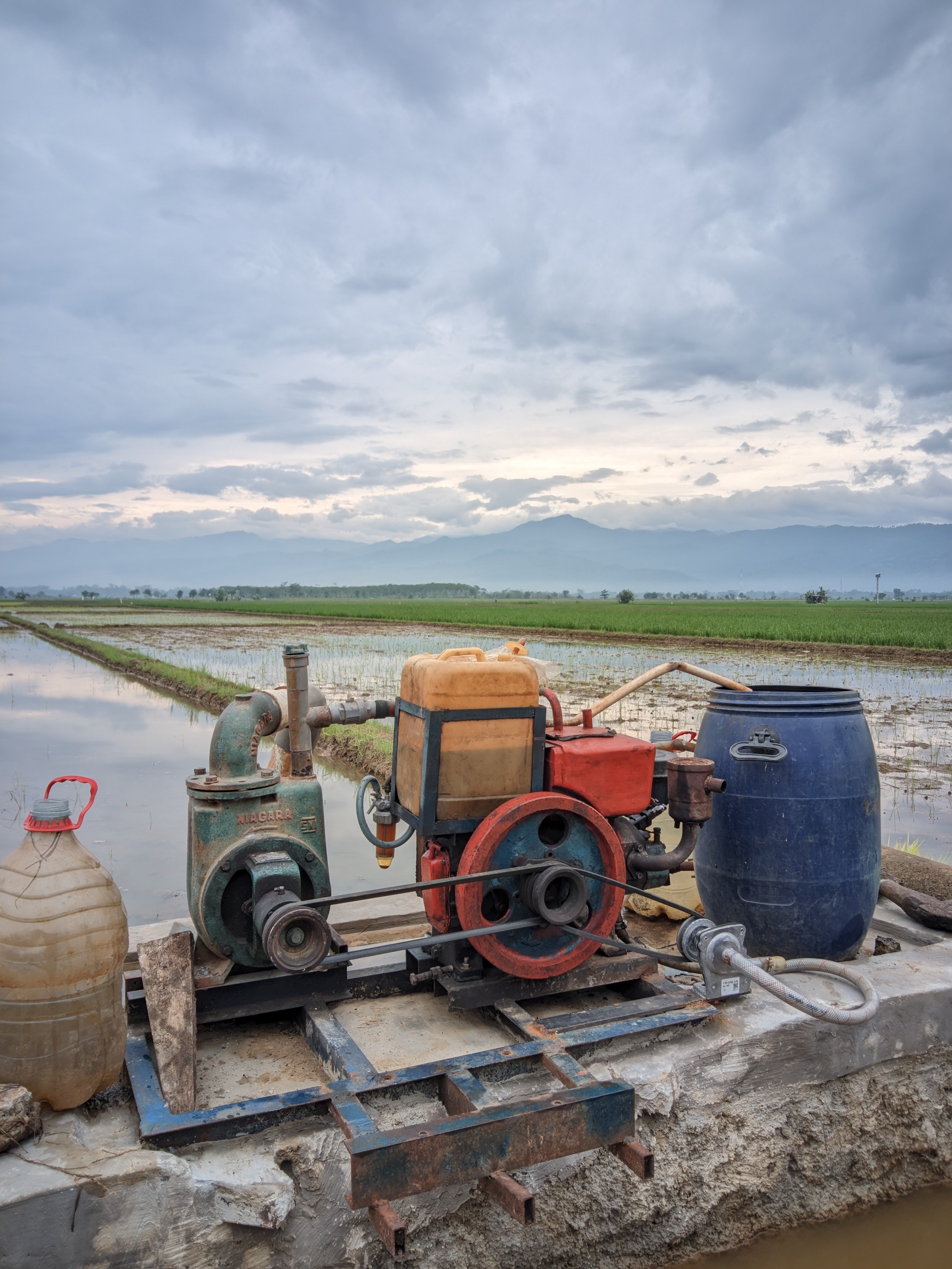 Pompa air ini digunakan khususnya ketika penyemprotan pupuk cair ke sawah, sehingga akan lebih efisien
